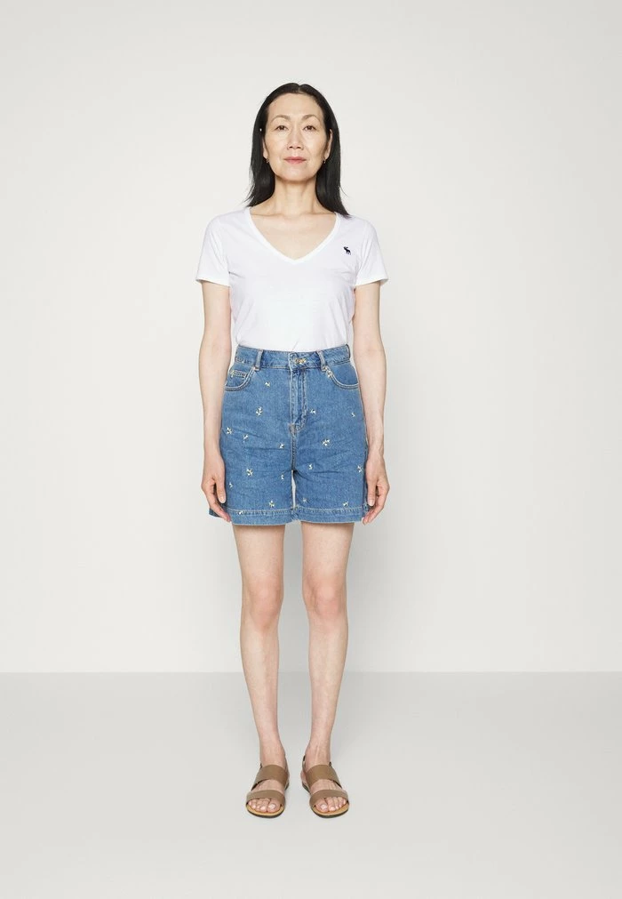 - Neckline: Low-cut v-neck